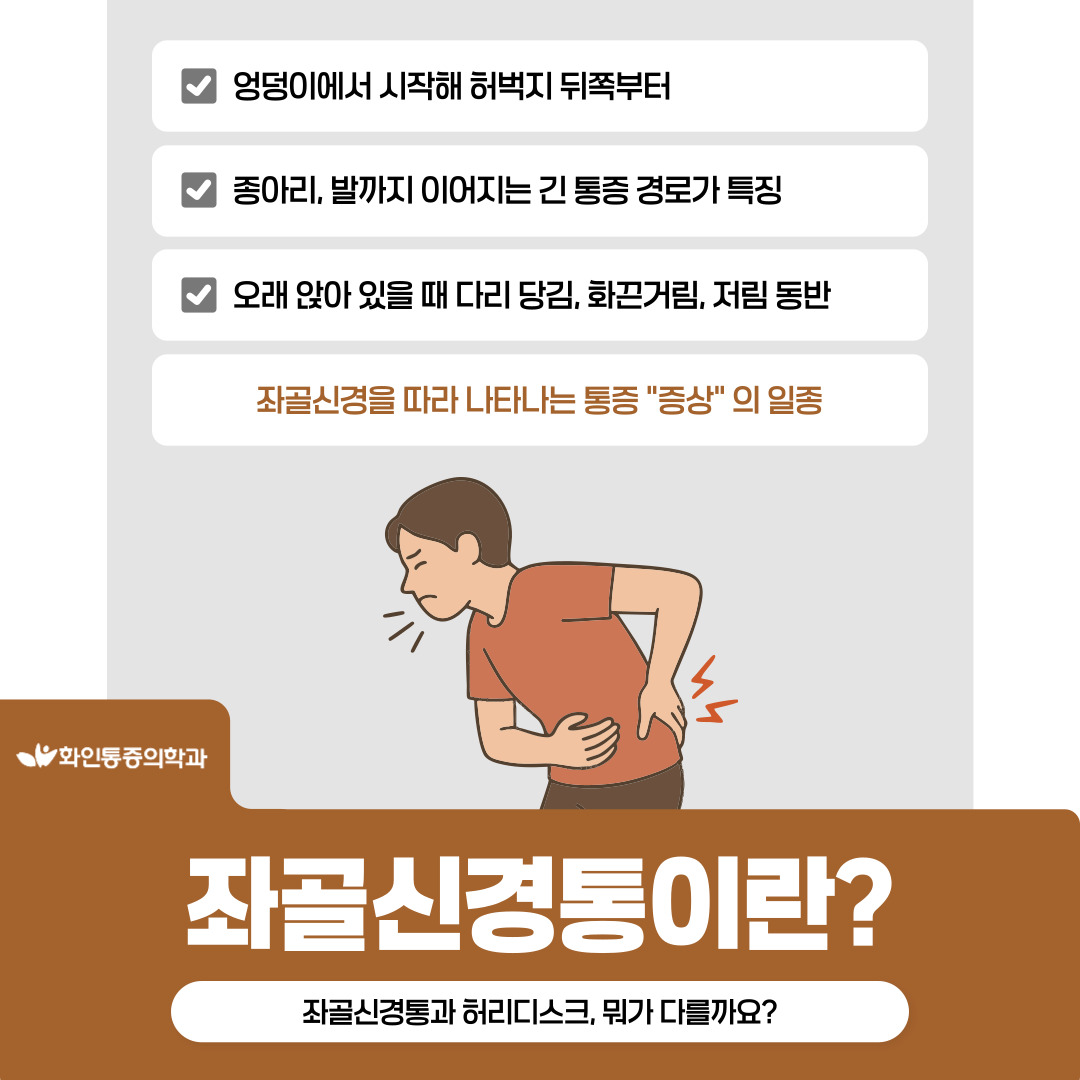 | 오래 앉아 있으면 다리가 당기는 느낌, 좌골신경통인가요? 허리디스크인가요? |