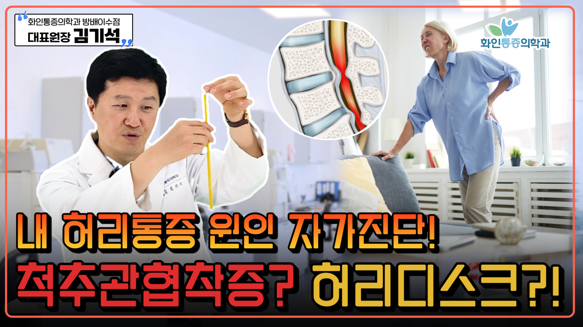 '척추관협착증'과 '허리디스크' 무슨 차이? 내 증상은 어느 쪽일까요,,? 귀에 쏙쏙 들어오는 설명 [화인통증의학과 방배이수점 김기석 원장]